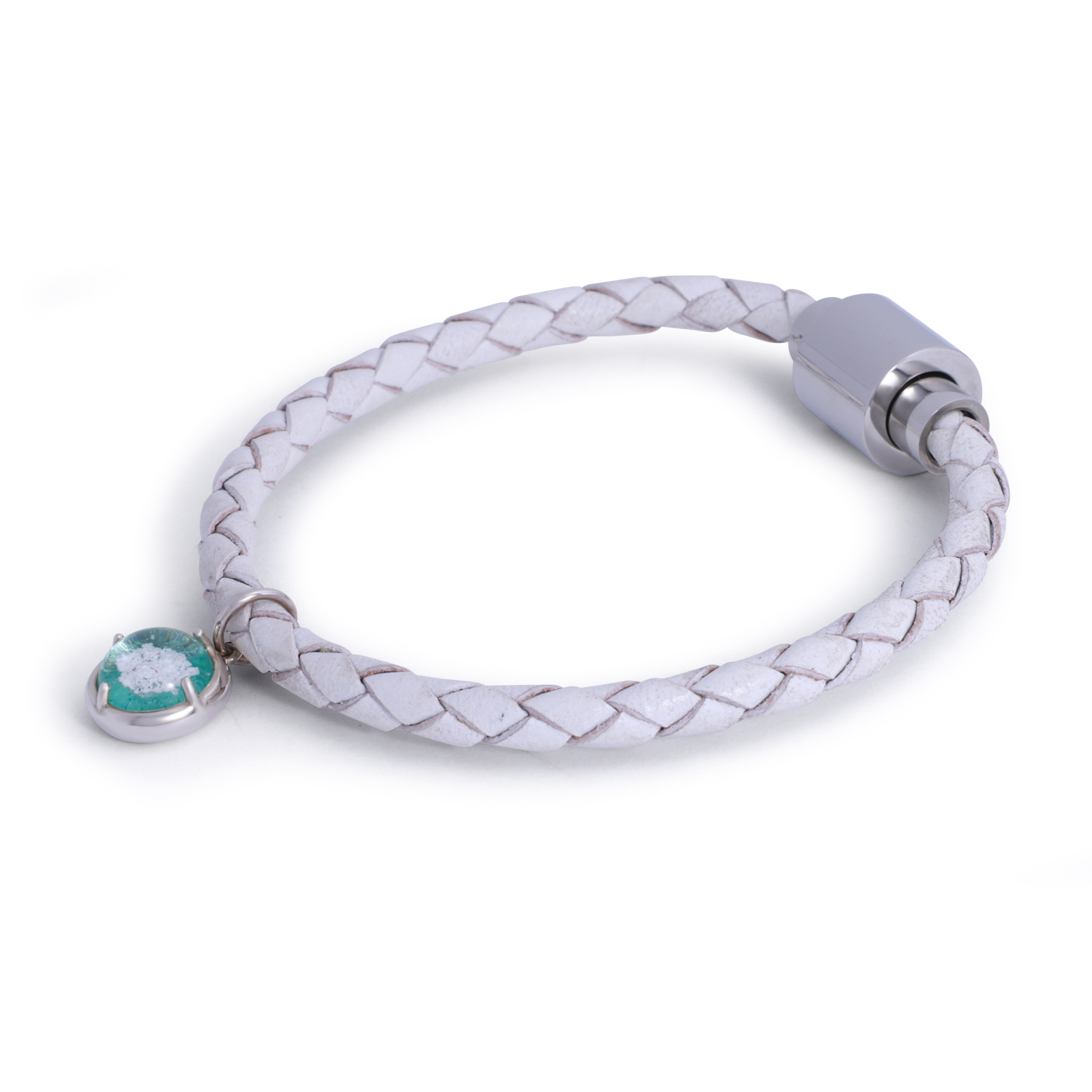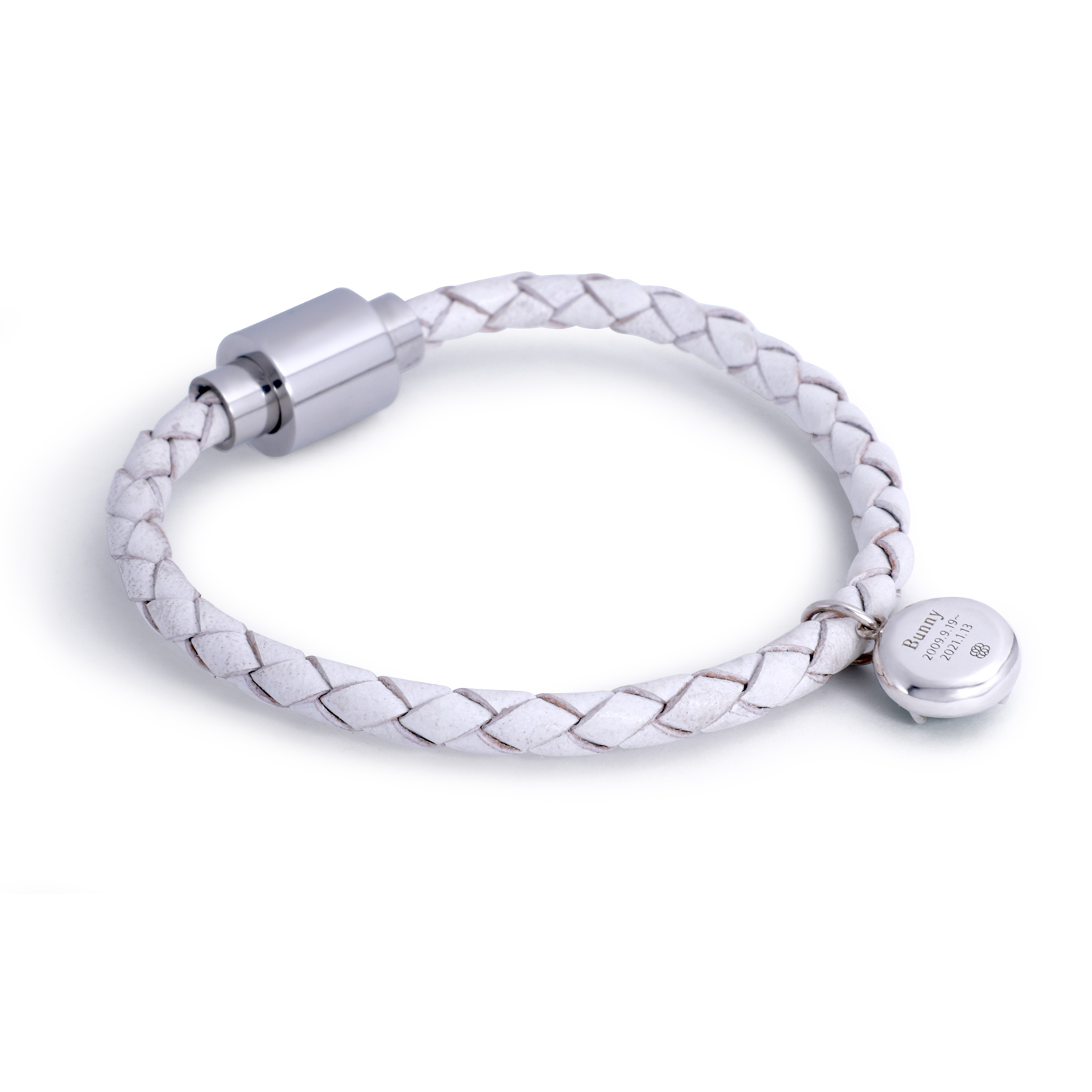 純銀淨白皮革編織手鍊刻字
